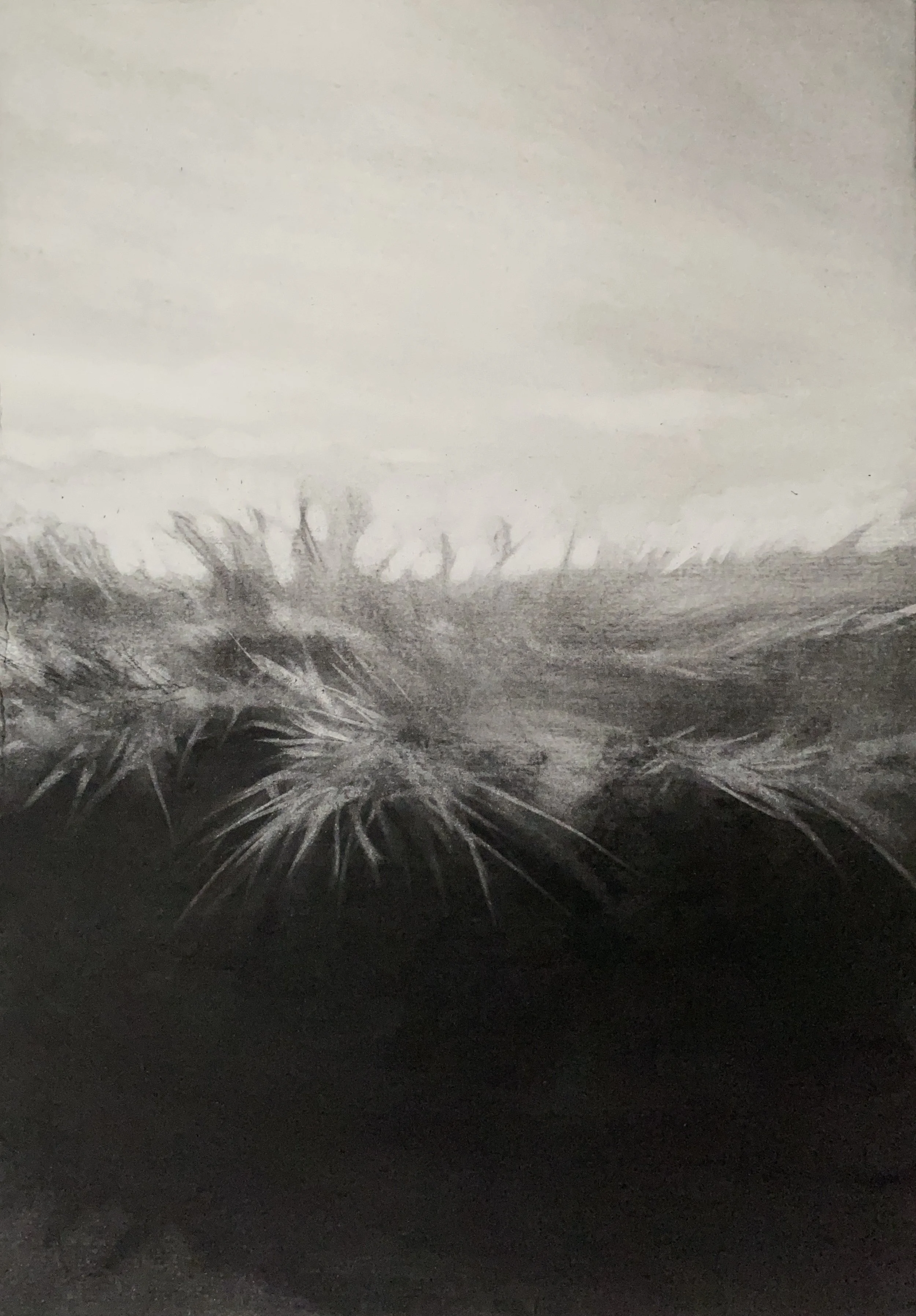 Kate Boucher’s work is created in response to landscapes that are in some way, transitional. These landscapes are recorded in the liminal states of twilight and daybreak, where the separation seems thinner between the real, the sensed and the remembered. Boucher responds to these landscapes through a drawing and making practice, exploring this tension between the sensed and the known.